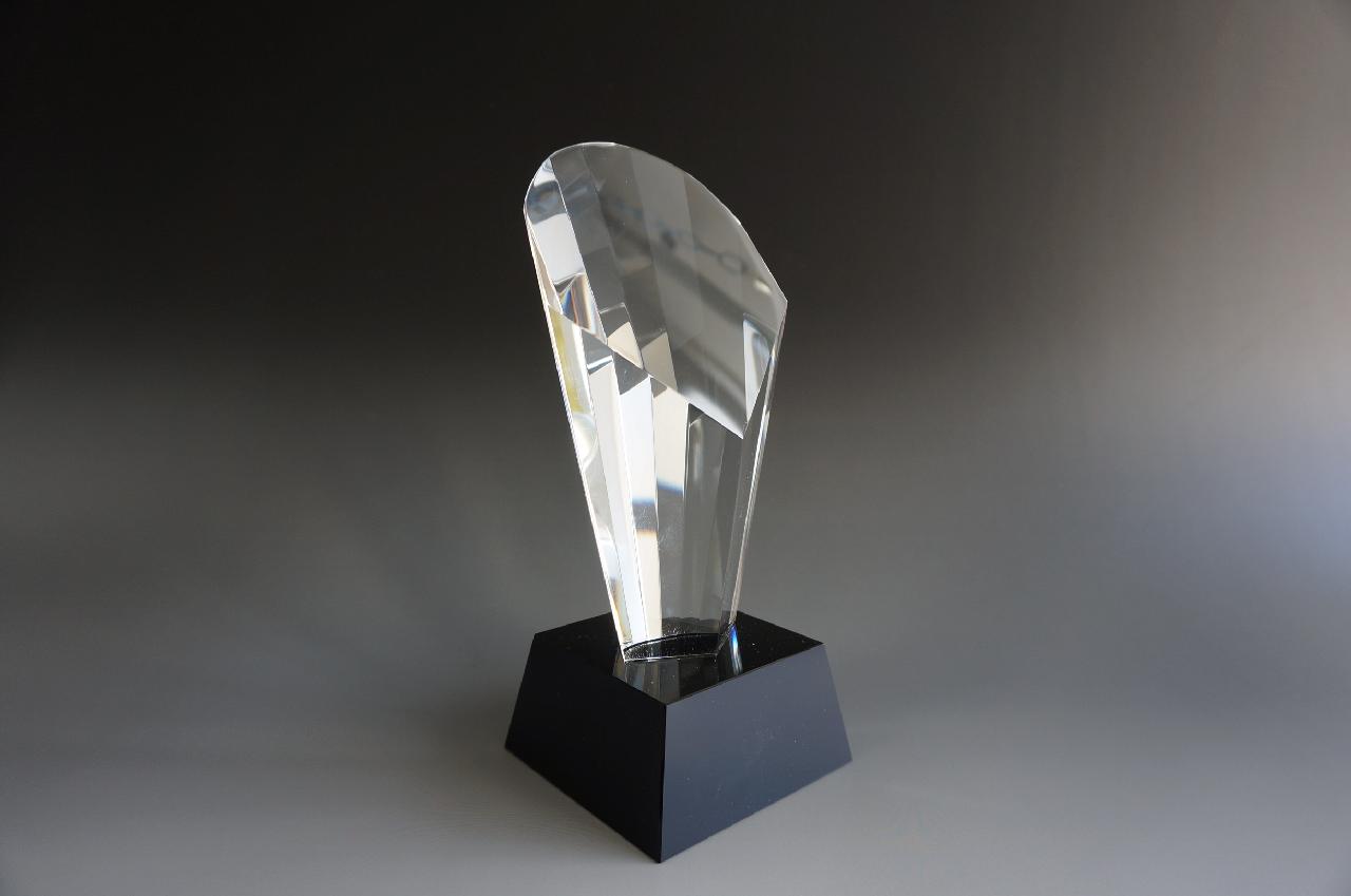 光のコントラストを生み出す背面のカットが個性的で美しい商品です。表彰名や受賞者名、日付などを彫刻し、オリジナルのクリスタルトロフィ・盾を製作致します。